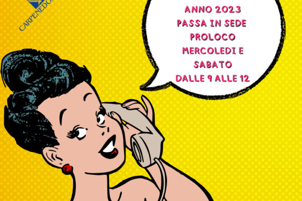 E’ aperto il tesseramento della Proloco Carpenedolo per l’anno 2024. Passa in sede Proloco per rinnovare la tua tessera o per una nuova iscrizione. Ti aspettiamo in Piazza Matteotti (sotto il porticato) il mercoledì e il sabato dalle 9 alle 12.